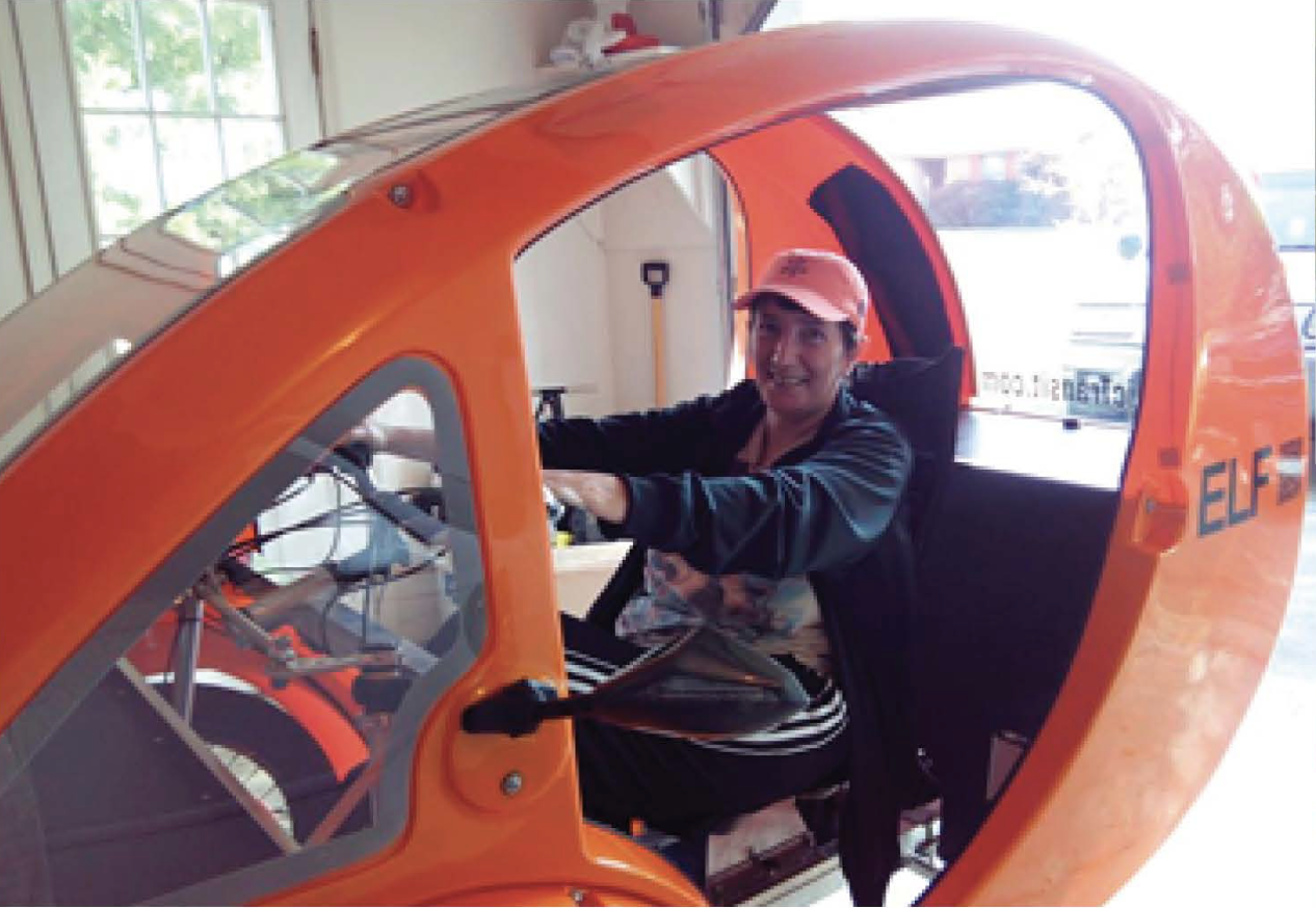 “I drive it to work every day. I work only 3 miles from home, so it just makes sense. My husband thought the idea was silly at first, but then realized we could save some money if we sold my car and bought the ELF. I want to save the earth and he wants to save money, so we are both prertty happy.”
